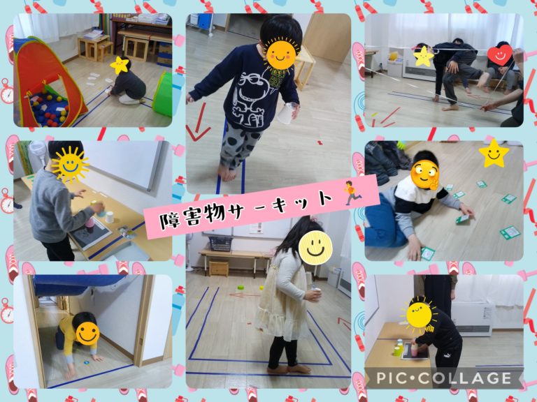 今回は、室内でできる運動を組み合わせて行った【障害物サーキット 👟】の様子をご紹介します。