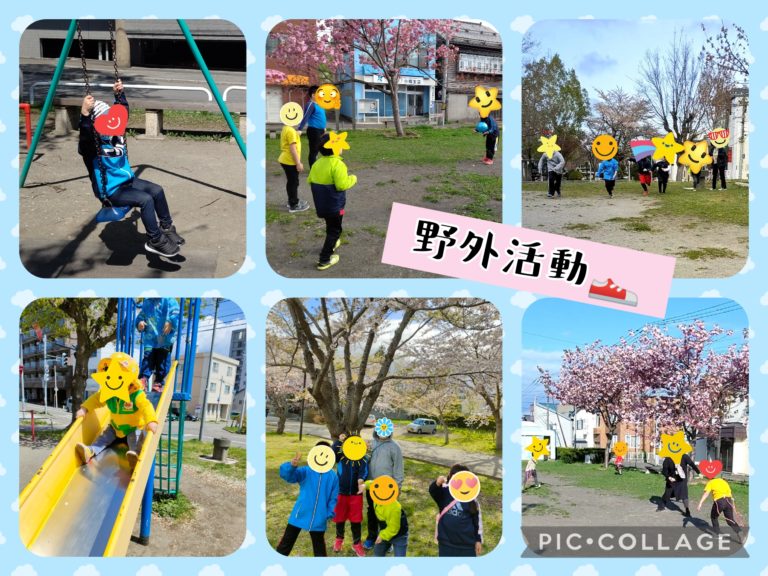 天気の良い日に、野外活動として、近所の公園などに散歩や外遊びに出かけました。