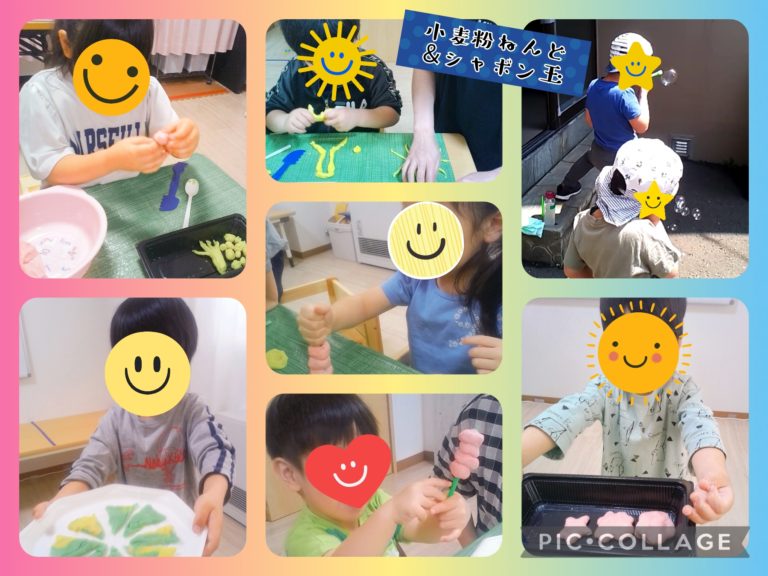 ☆【制作・野外活動:小麦粉粘土&シャボン玉(感触遊び)】