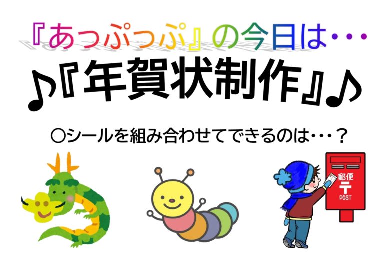 子ども達が作った年賀状は、それぞれのご家庭や親戚・お知り合いのお家・事業所の関係各所に届く予定です♪