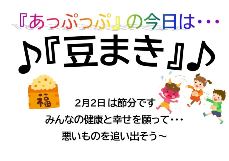 2月2日は節分!!ということで、あっぷっぷでも節分にちなんで「豆まき」をしました。