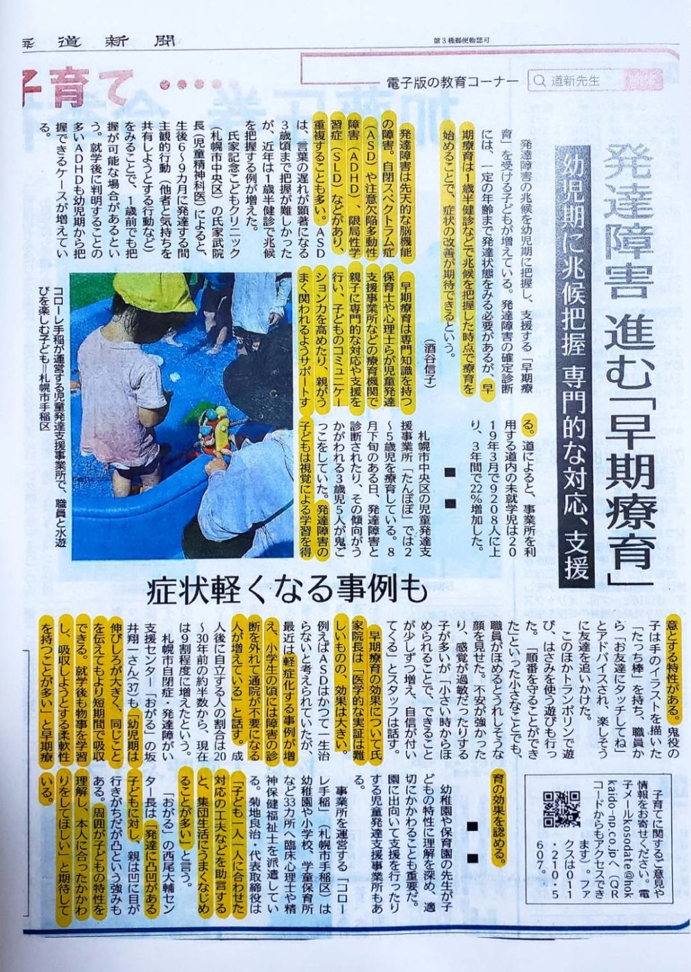 『 療 育 』という言葉からのイメージは、重度の障がいの子ども達が行く場所…みたいに思われがちですが、決してそんなことはありません。そんなことを考えながら、自分が持っているたくさんの資料などを整理していたところ…。2年位前に道新に掲載されていた記事を見つけました 👀 ✨