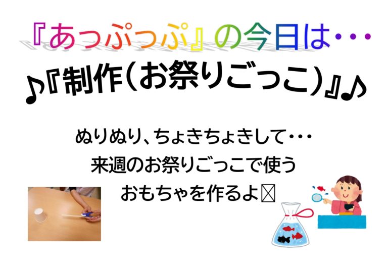 あっぷっぷでもお祭り気分を味わえる、お祭りごっこを活動に取り入れています ✨