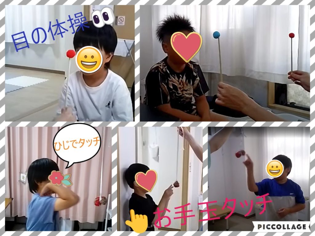 活動の中に、1日数分でできる短時間のトレーニング(👀目の体操、👆お手玉タッチ等)やジオボード等を使った遊びも取り入れていますよ😊