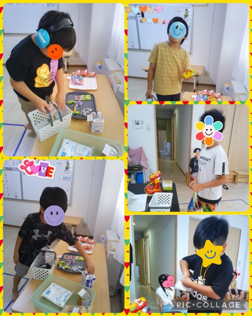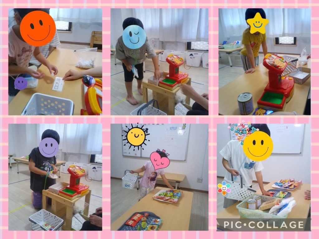 近所のスーパーや八百屋さんでの買い物を予定していたのですが、この週はとても気温が高く、熱中症警報も出ていたため、外での買い物は危険と判断し、室内での買い物ごっこに切り替えました 🌞