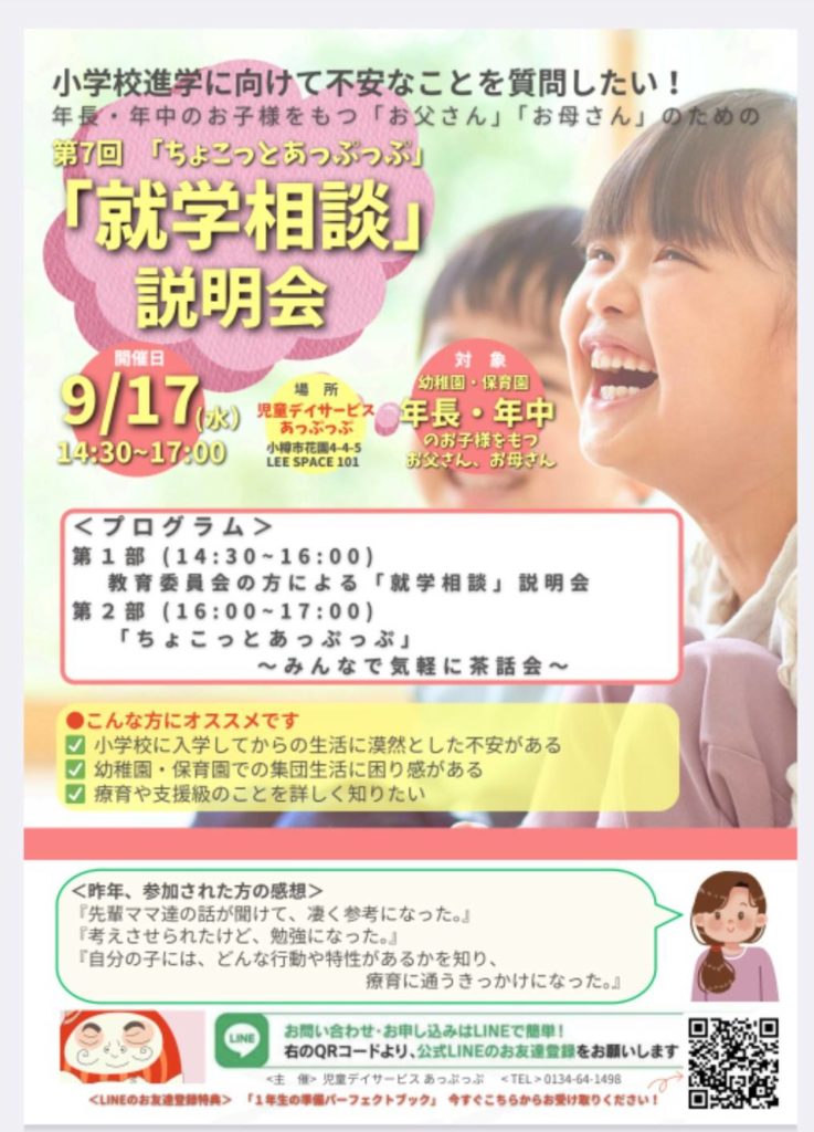 ★『第7回 ちょこっとあっぷっぷ』で『就学相談説明会』を開催します!
