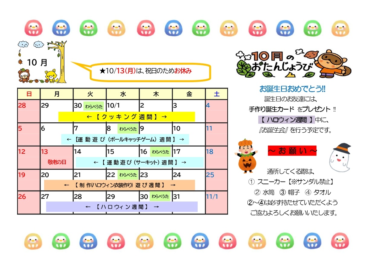 📅【10月の予定】
