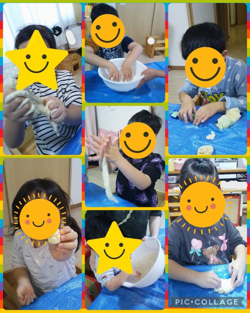 ベタベタが苦手な子も、繰り返しの中で少しずつ取り組むことが出来るように、自分たちでねんどを作ることからスタート🌾