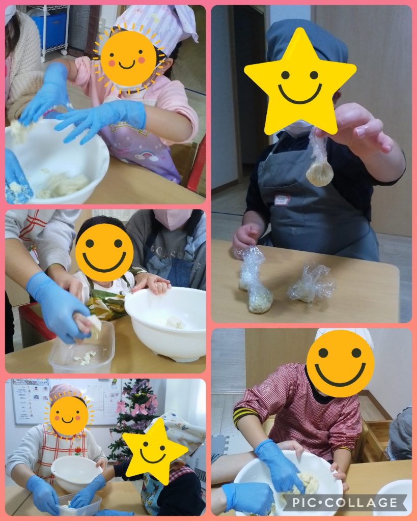 豆腐ドーナツの活動では、生地を こねる・丸める 工程が大切!