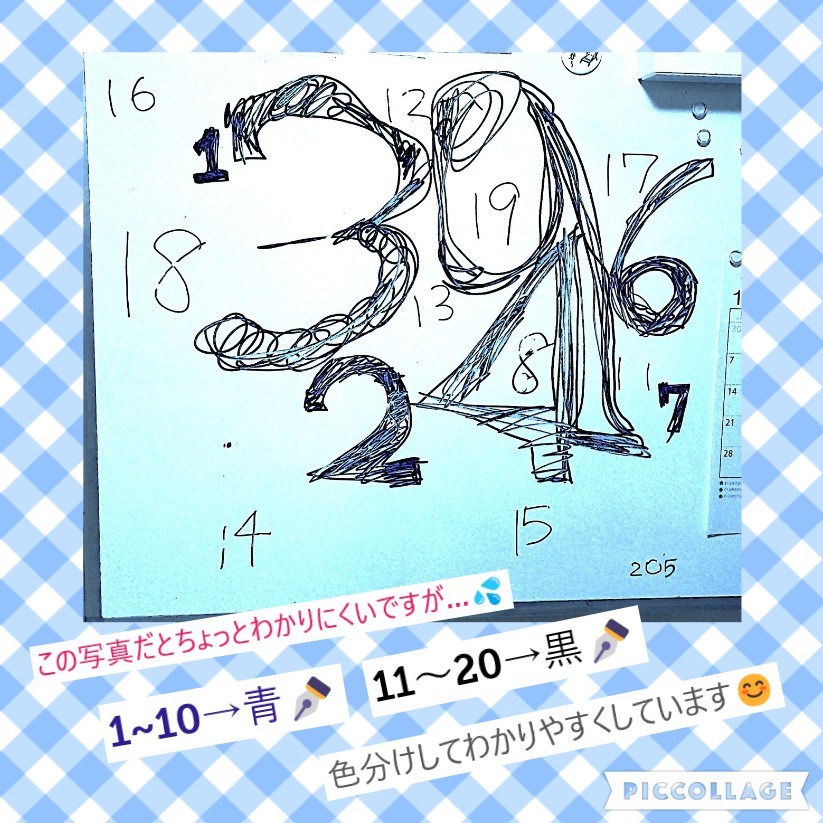 《1~10》を書く人」「《11~20》を書く人」に分担して、子ども達自身に担当してもらいました 🎨